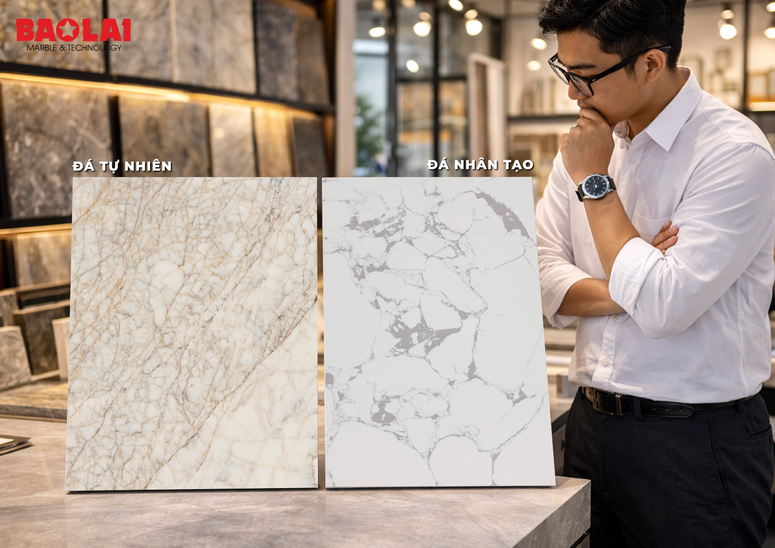 | Tiêu chí | Calacatta (đá nhân tạo) | Đá tự nhiên |