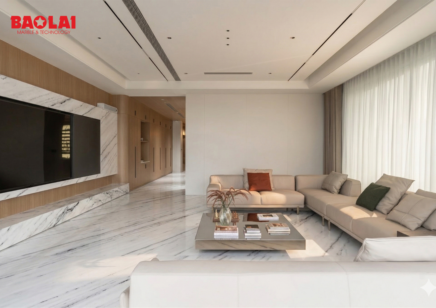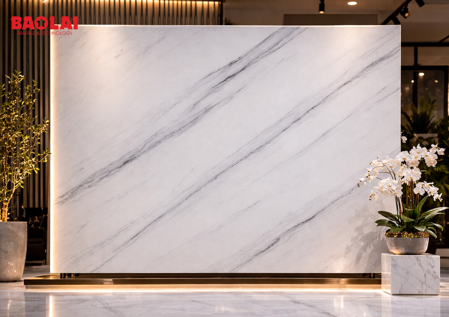 Đây là lý do nhiều kiến trúc sư lựa chọn các dòng đá trắng vân nhẹ như Polar White cho các công trình cao cấp.