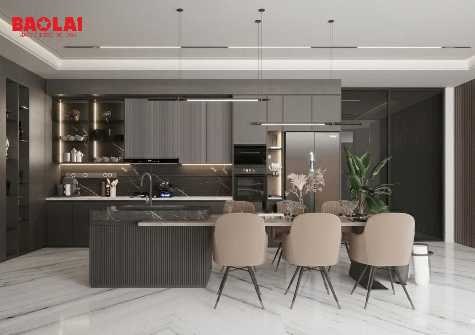 Ngược lại, những vật liệu có màu trung tính, vân nhẹ và tự nhiên như Polar White thường có giá trị thẩm mỹ lâu dài hơn. Sau nhiều năm sử dụng, không gian vẫn giữ được vẻ đẹp ban đầu.