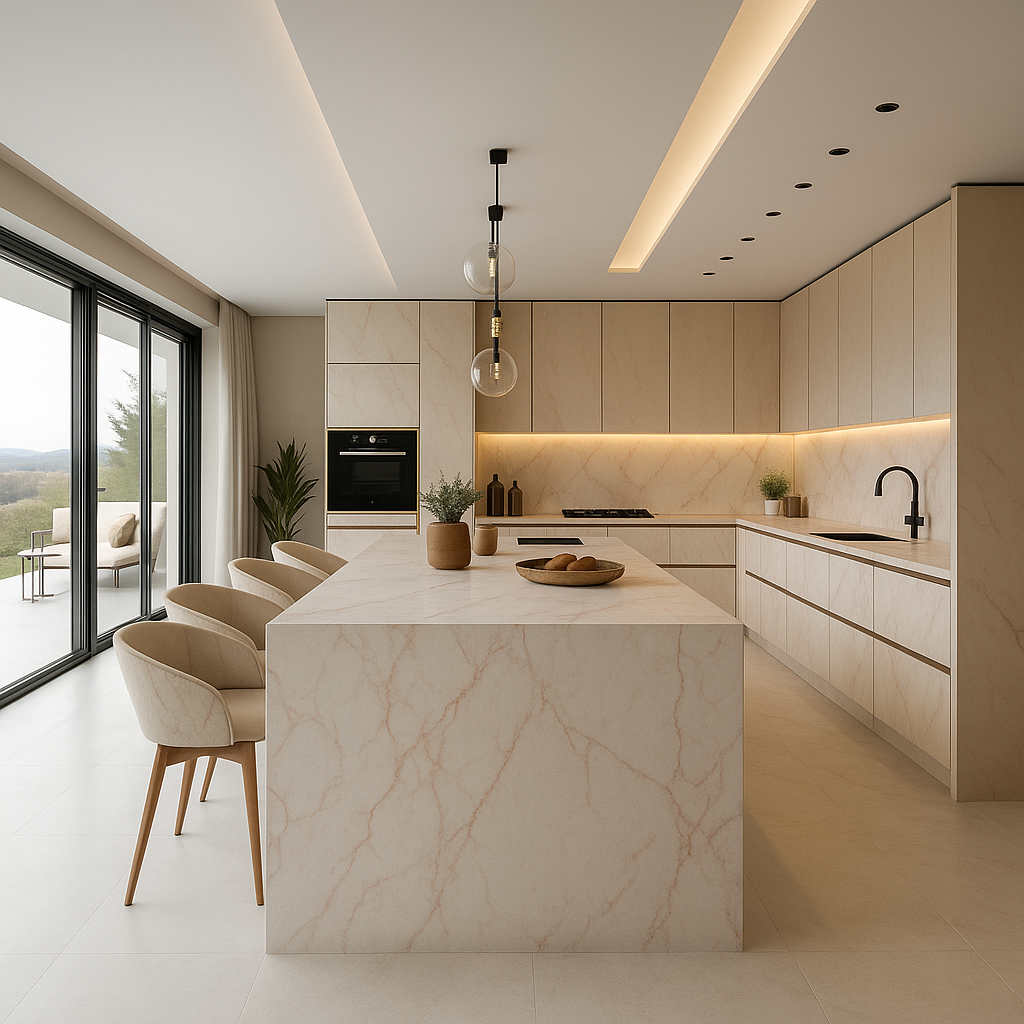 ⭐ Xu hướng sử dụng đá cẩm thạch tự nhiên & nhân tạo – Ngôn ngữ trắng xuyên suốt trong thiết kế hiện đại
