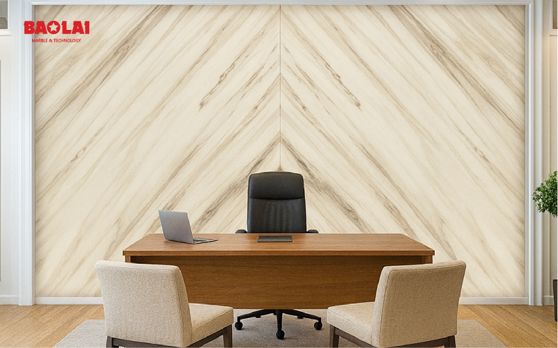 Bookmatch (ghép đá đối xứng) đang là xu hướng lớn trong thiết kế đá marble năm 2025. Nhờ hiệu ứng phản chiếu của vân đá tự nhiên, bookmatch giúp không gian trở nên ấn tượng, sang trọng và có chiều sâu hơn bất kỳ kiểu ốp đá nào khác.